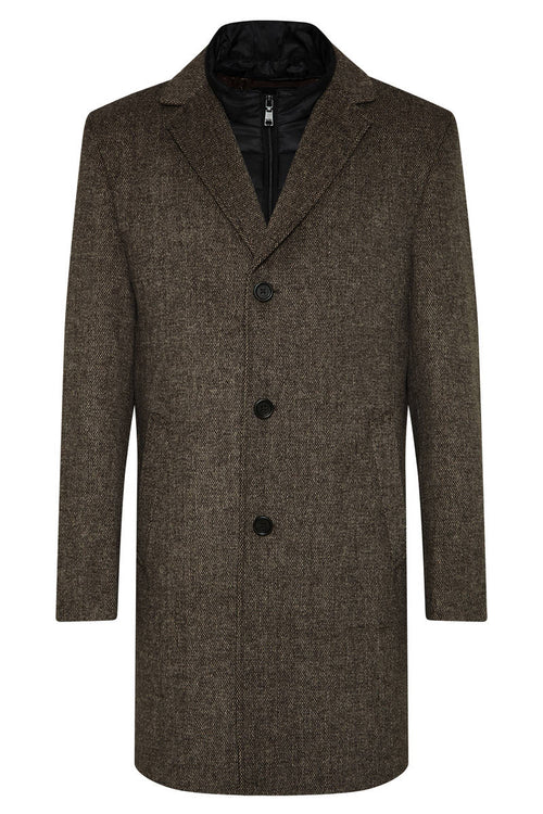 3/4 Length Wool Blend Luxury Overcoat with Zip-Out Panel