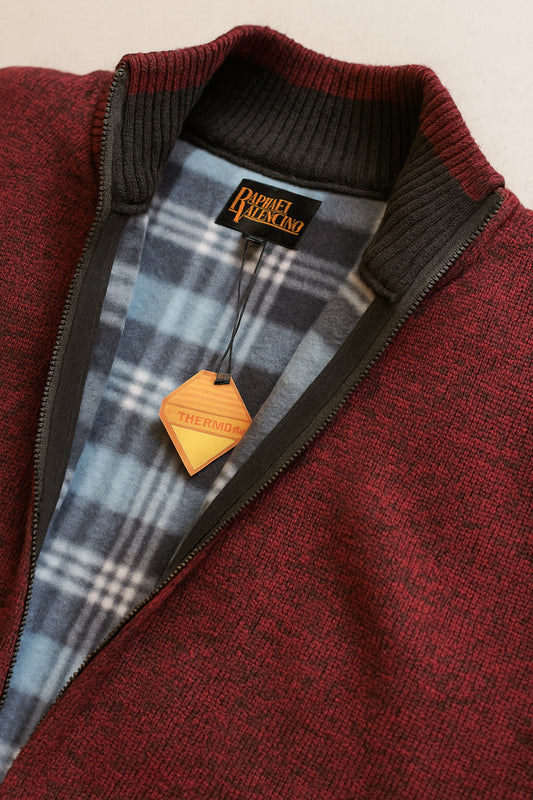 Chunky Knit Fleece-Lined Zip Cardigan - Burgundy
