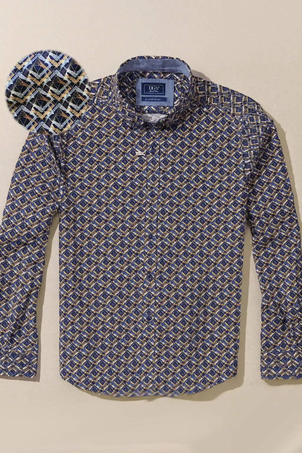 Geometric Pattern Button-Down Shirt - Navy / Gold