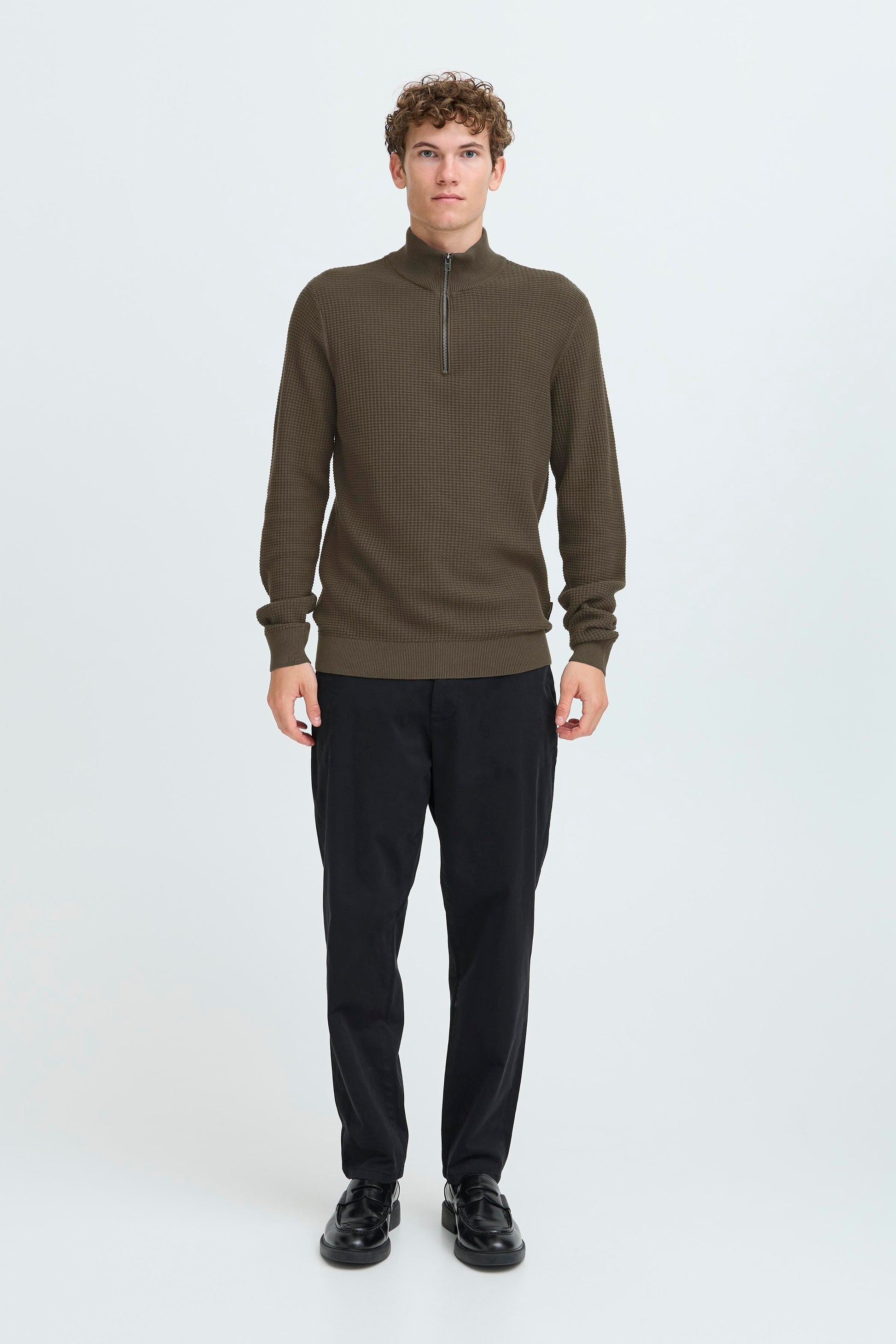 Textured Quarter-Zip Cotton Sweater – Olive Green