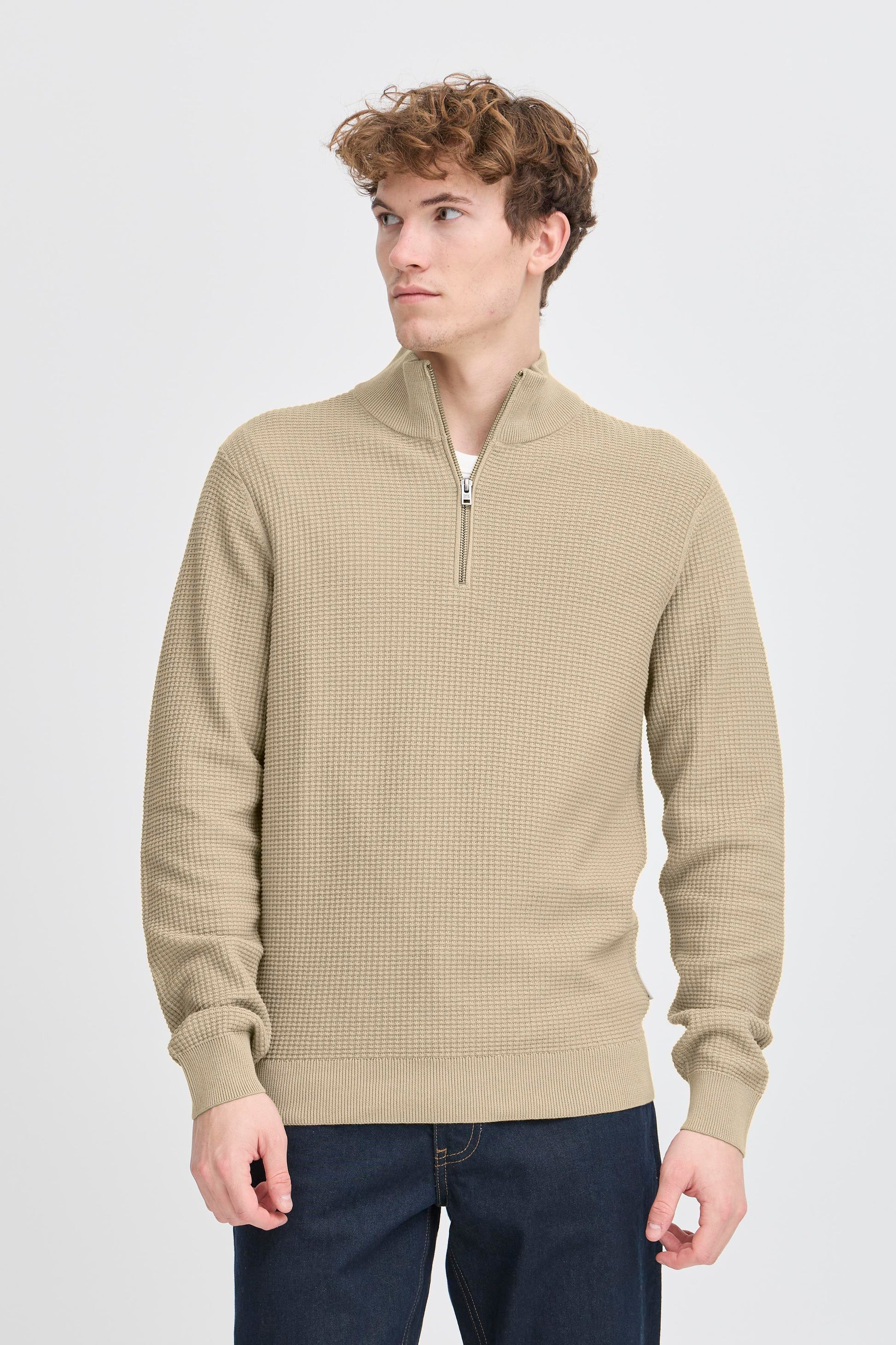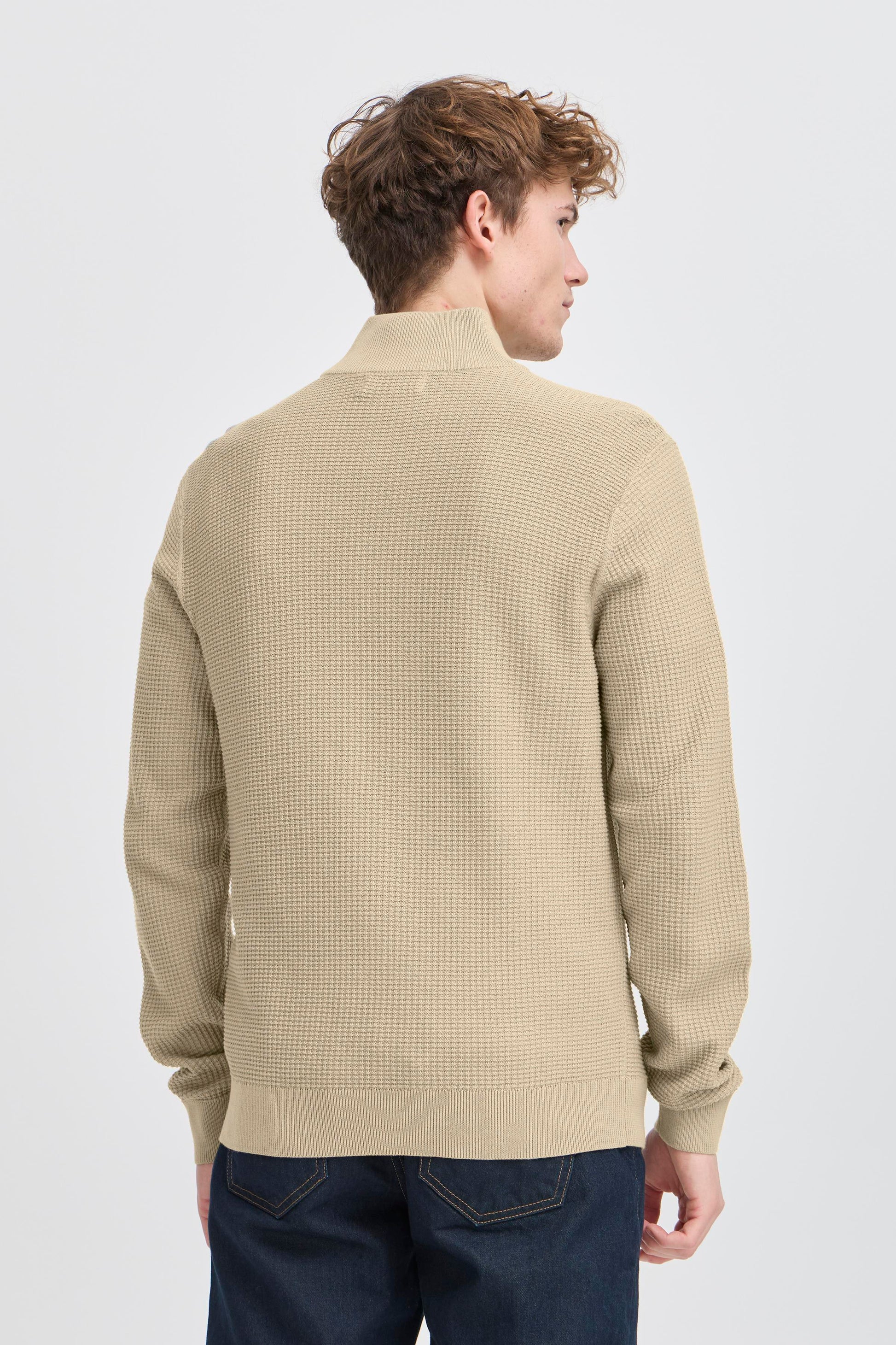 Crafted from 100% pure cotton, this beige quarter-zip sweater combines modern texture with timeless style. The waffle-knit pattern adds depth and a distinctive look, while the ribbed collar, cuffs, and hem ensure durability and comfort.