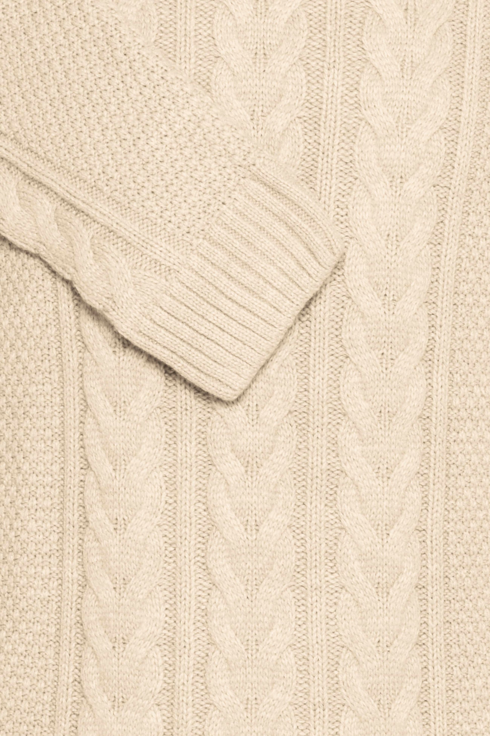 The intricate cable knit pattern adds classic character, while subtle folds and a relaxed silhouette create a naturally casual, lived-in look. Ideal for layering or wearing on its own, this jumper pairs perfectly with denim or tailored trousers for an elevated everyday outfit.