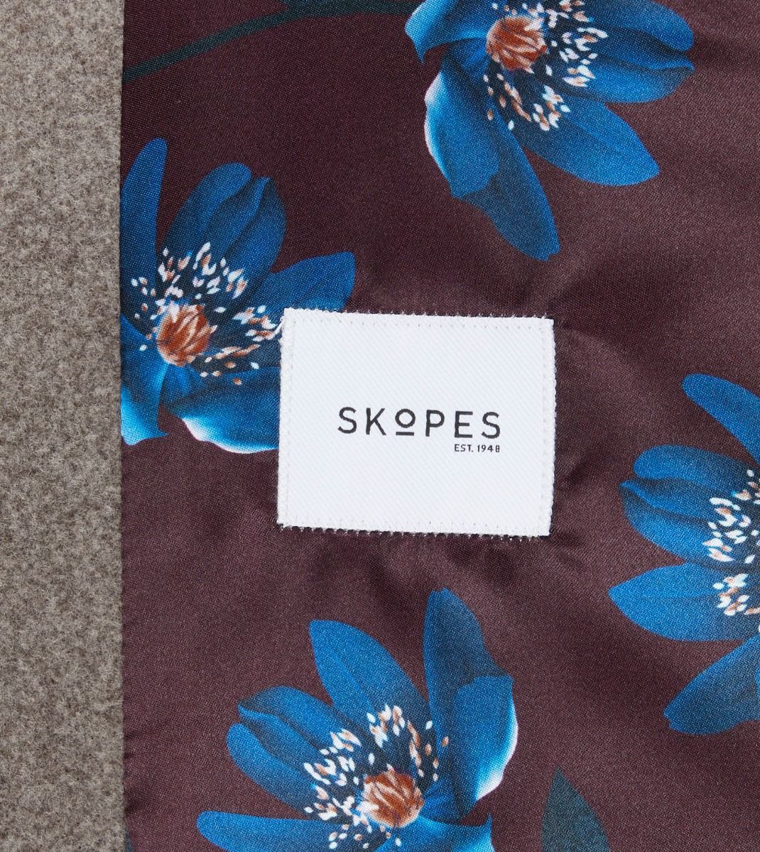 Features near vertical waist pockets, funnel neck, floral print lining, super soft mouflon fabric with single centre back vent.