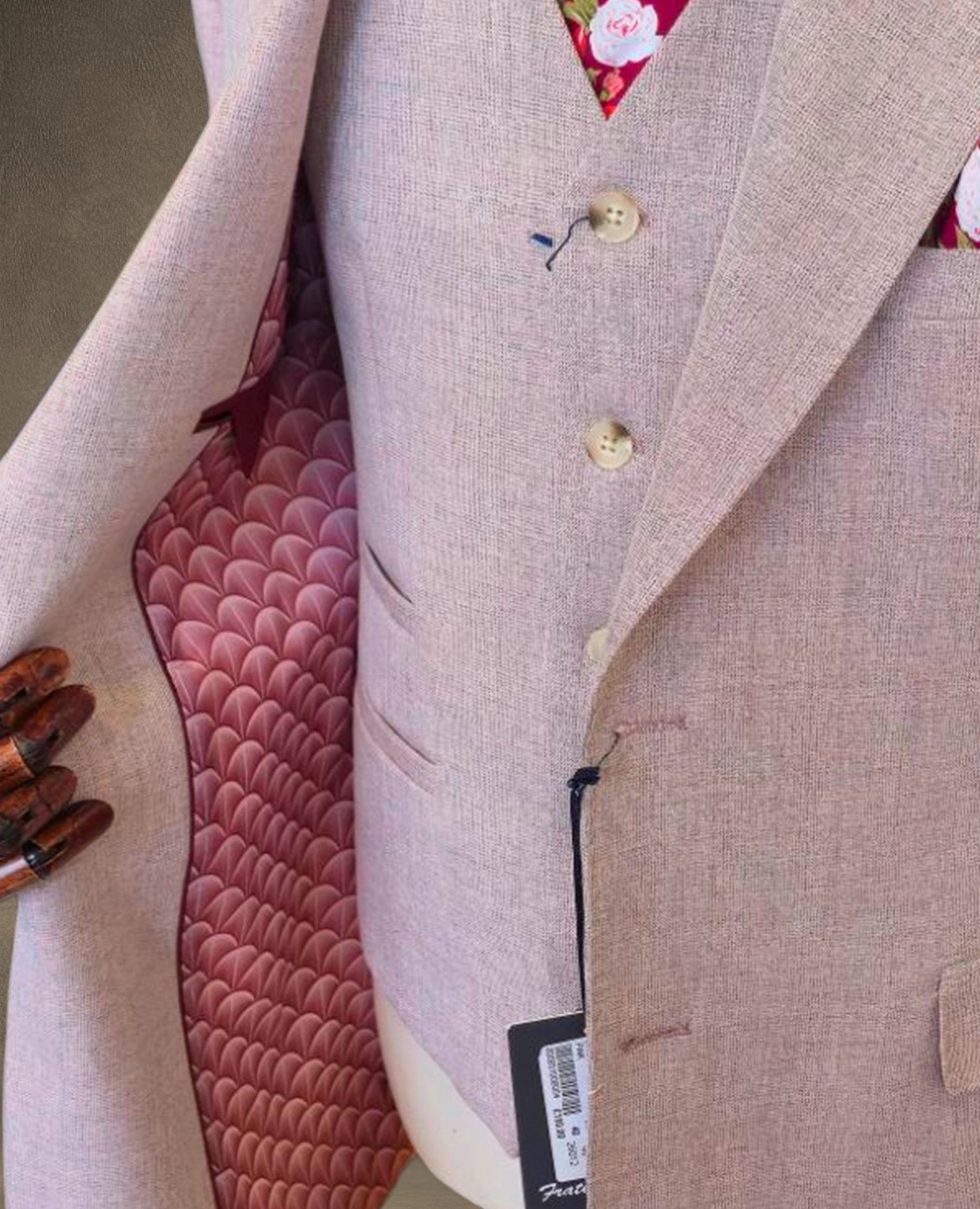 Crafted with attention to detail, this soft pink jacket exudes modern sophistication and timeless style. The soft pink colour adds a touch of elegance and charm to any outfit. Ideal for weddings, special occasions, or everyday wear, this soft pink jacket offers exceptional versatility and grace. Pair it with the matching waistcoat for a coordinated ensemble that radiates chic refinement, or mix and match with other pieces for a personalized and polished look.