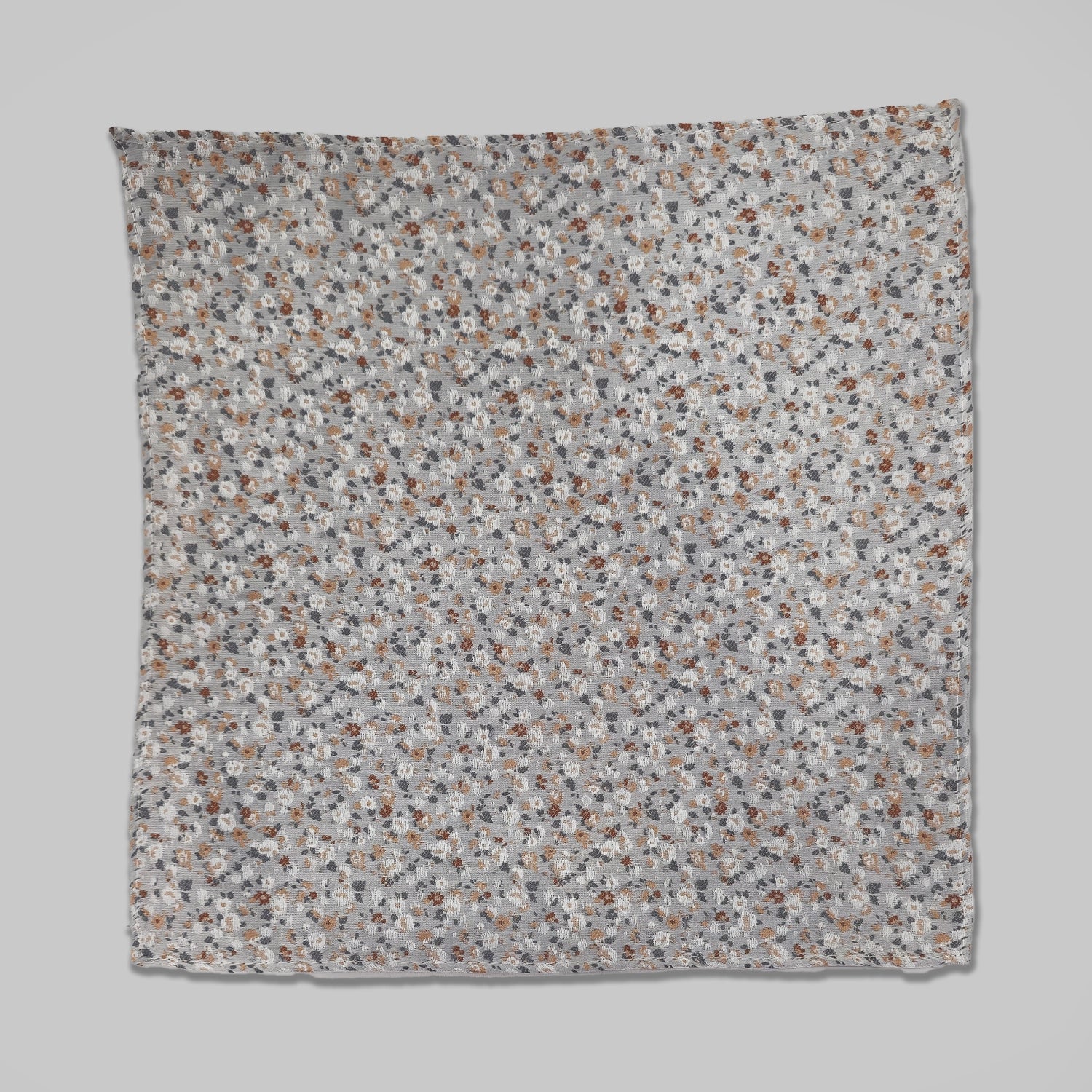 Mini Floral Print Tie and Hankie Set - Silver Peach